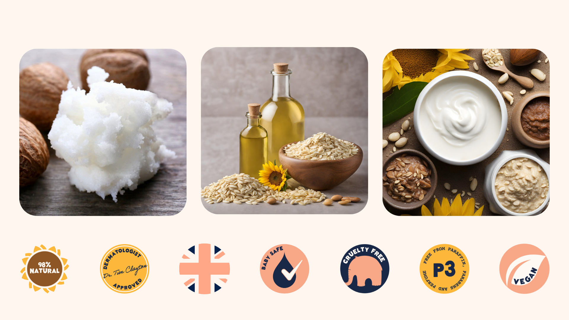 Our unique formulation is anti-inflammatory and features ingredients such as shea butter, cocoa seed butter, avocado oil and jojoba seed oil, ensuring that your child's skin stays moisturised and beautifully conditioned.